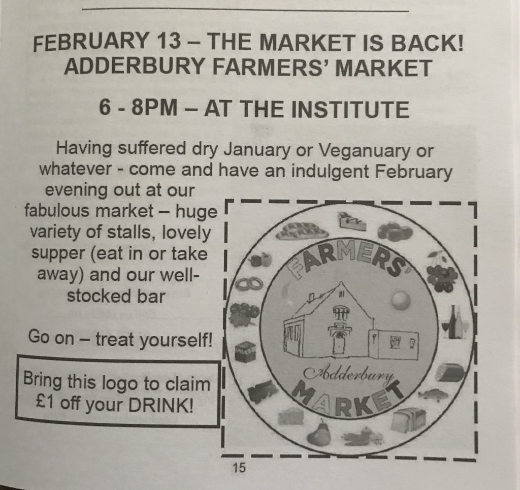 £1 off any drink We are back this coming Thursday the 13th of February, and ass a thank you, we are offering £1 off of any drink in the market. Just show the image above to receive your discount.